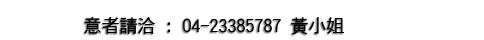 台中縣烏日鄉中山路一段和平巷136號 TEL:+886 4 23385787 FAX:+886 4 23382862